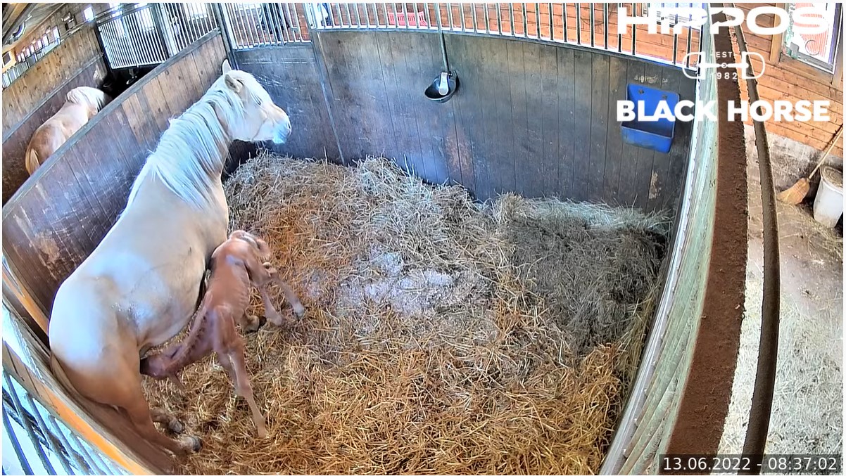 Orivarsa voi hyvin ja se on tehnyt vastasyntyneelle varsalle tärkeimmät toimet: noussut pystyyn, nauttinut emän ternimaitoa ja kakannut niin sanotun pikikakan.